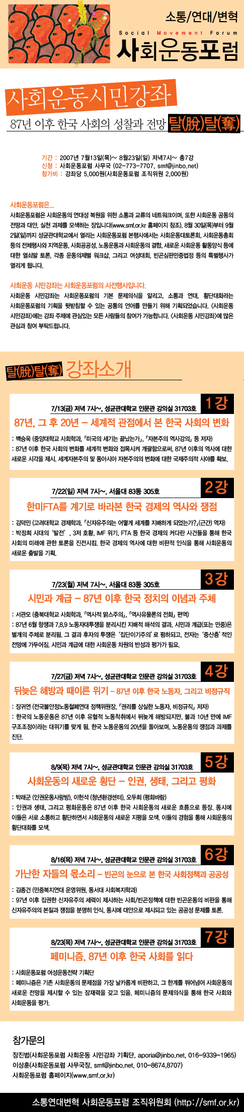 | 1191 | [smf]페미니즘 사전 워크숍 광고 ver.2 | 사회운동포럼 | 2007.07.11 | 41237 |