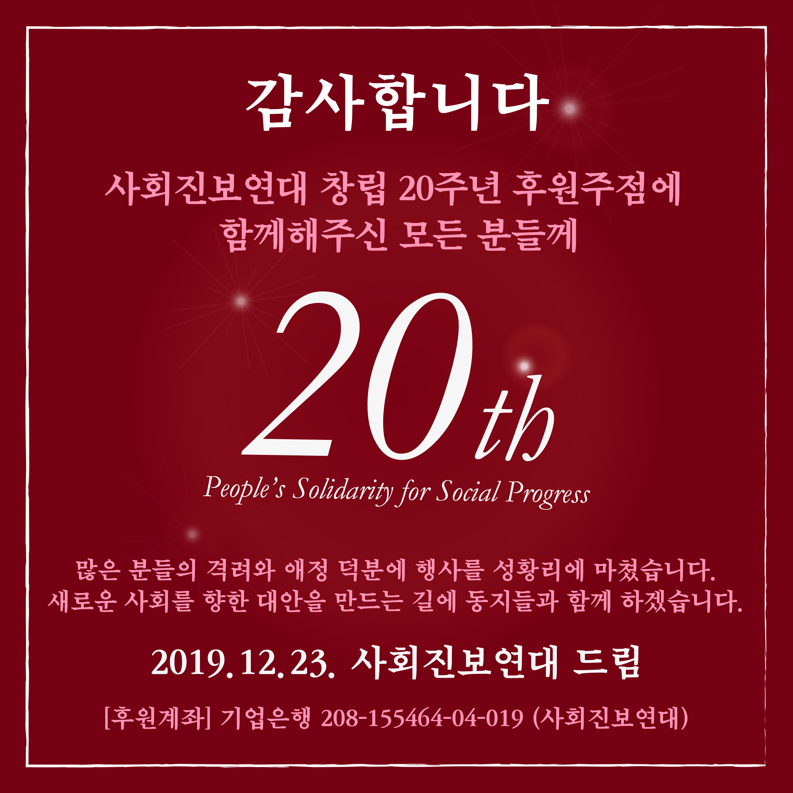 공지사회진보연대 창립20주년 후원주점에 함께 해주셔서 감사합니다.