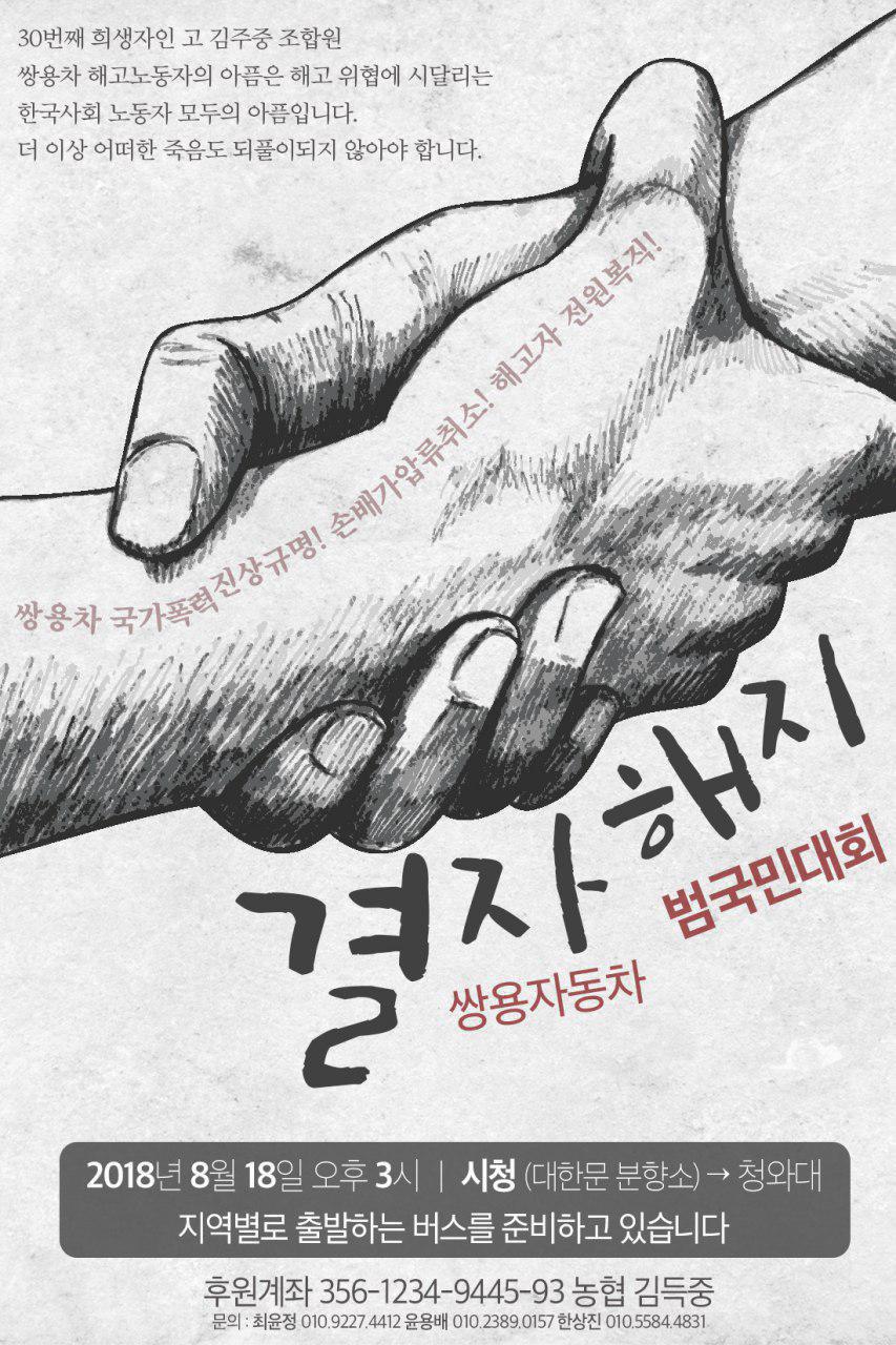 공지8.18 쌍용차 국가폭력진상규명, 손배가압류취소, 해고자전원복직 범국민대회
