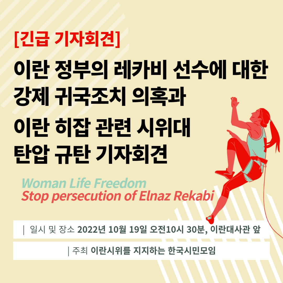 성명이란 정부는 레카비 선수에 대한 강제 귀국조치 의혹을 구체적으로 해명하고 이란 히잡 관련 시위대에 대한 탄압을 중단하라!