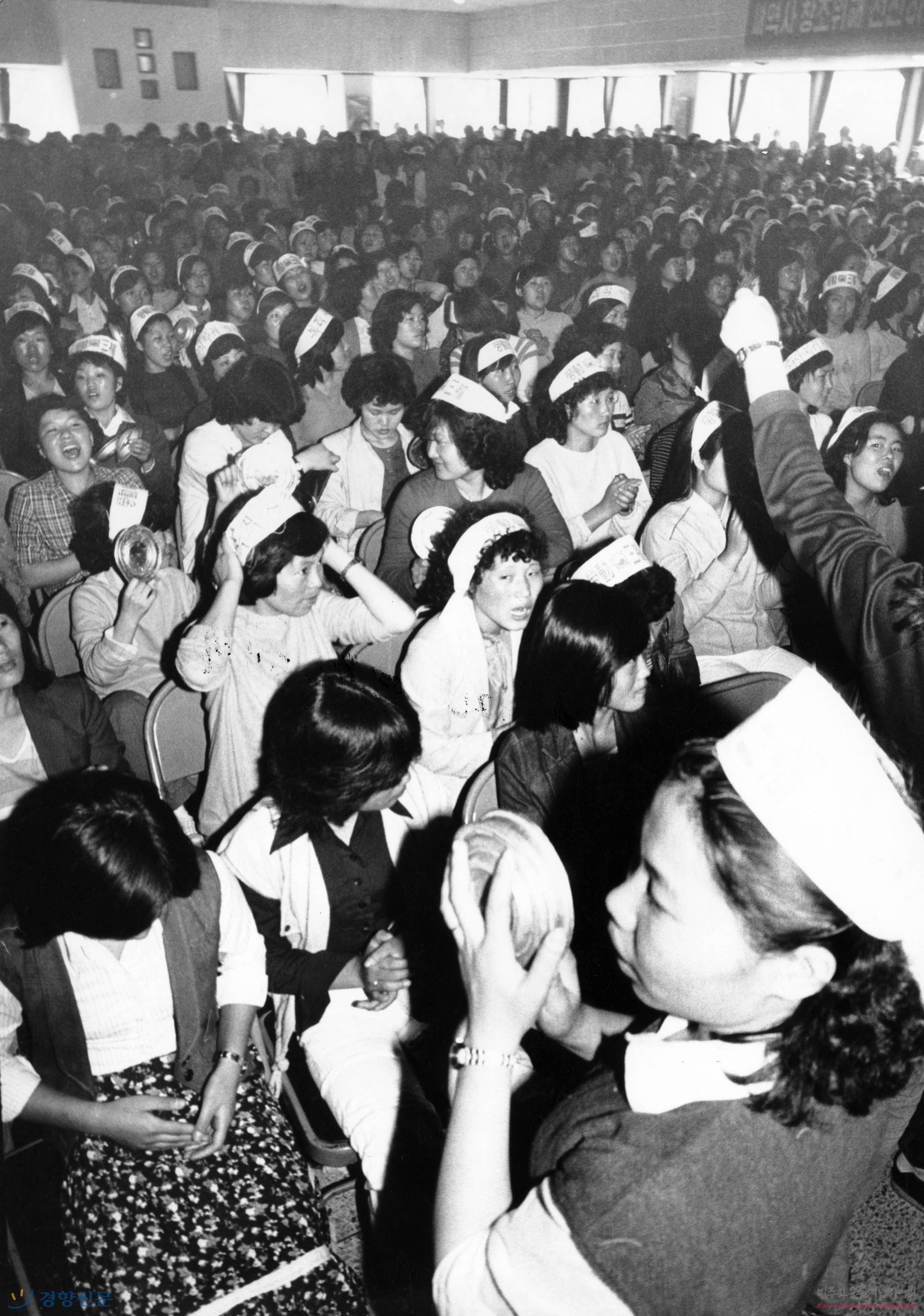 1975년의 어느 날이었다. 점심시간이 시작되자, 오전 내내 허리 한번 못 펴고 와이셔츠를 만들던 이 미싱사들이 식사를 2~3분 만에 급하게 먹고 어디론가 뛰쳐나갔다. 도착한 곳은 와이셔츠 회사 ‘광진복장’의 평화시장 1층 점포와 동화시장 5층 공장이었다. 그 앞에서 미싱사들은 “광진복장 사장 ○○○은 퇴직금을 지급하라”2), “근로기준법 지켜라”라고 큰 소리로 외치고, ‘우리 승리하리라’라는 노래도 불렀다. 비좁은 시장은 아수라장이 되었다. 1시 50분이 되자 노동자들은 언제 그랬냐는 듯 조용히 공장으로 돌아가 일을 시작했다.
