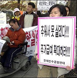 문제는 최저생계비 자체도 워낙 낮게 책정되어 있지만, 그나마도 지역별․가구유형별 특성이 전혀 반영되어 있지 않다는 점이다. 중소도시를 기준으로 하고 있기 때문에 대도시에 사는 사람의 경우에 전세비 등 비용이 더 추가되는 부분에 대한 고려가 없다. 가구유형별로는 장애가구의 경우 보건복지부에서 발표한 “2000년 장애인실태조사”만 보더라도 장애인가구는 보장구․의료비․간병비․특수교육비 등의 추가 지출이 장애유형․등급별로 다양하나 평균적으로 월 157,900원인 것으로 나타났는데, 이에 대한 정부의 대책은 올해 들어 장애인 수당을 5,000원 인상하여 5만원을 지급하는 것이 전부다. 그나마도 장애등급에 따라 제한이 있어 모든 장애인에게 주어지는 수당도 아니다. 즉, 대도시에 사는 장애인의 경우 최저생계는커녕 생존을 위협받는 수준의 생계급여를 받을 수밖에 없는 것이다.