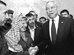 그러나 백악관이 아라파트에 대해 샤론과 같은 입장(“아라파트는 테러리스트이자 악마이다”)을 갖고 있는 것 같지는 않다. 백악관의 입장은 오히려 “아라파트가 테러를 중단시킬 수 있지만 그렇게 하지 않았기 때문에(그래서 ‘보다 더’ 노력해야 한다) 그러한 테러공격에 대해 책임이 있다. 샤론의 입장과 마찬가지로 아라파트가 테러와 관련되었다고 보는 것은 사실이지만 그렇다고 그가 테러리스트인 것은 아니다.” 게다가 여전히 세계적으로 그는 평화과정에서 핵심적인 역할을 하고 있으며 진정한 팔레스타인의 지도자로 여겨지고 있는 것이다.