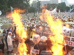 또한 경제의 금융화의 대가로 농업 개방은 불귀(不歸)의 점을 지나고 있다. 이미 김대중 정부는 4월에 발표한 ‘쌀산업종합대책’에서, 쌀값 하락을 유도하여 쌀 생산량과 쌀 재배 면적을 줄여가겠다는 입장을 분명히 밝힌 바 있다. 농업 보조금을 대폭 삭감하고, 논농사 포기를 대가로 농민에게 소득보전을 해준다는 ‘직접 지불제’ 시행을 내세웠다. (그러나 직접지불제에 배당된 예산 비중이 전체 농업예산의 2.9%로 아주 낮아 별 효과가 없다.) 이는 2004년 WTO 쌀 재협상을 앞두고 자발적으로 쌀 시장 개방을 준비하는 조치다. 이처럼 현 단계 농업 개방은 곧바로 남한의 농업 포기 정책을 의미하며, 저변에서 한국의 사회경제적 위기에 막대한 영향을 끼칠 것이다(농산물 대외 의존, 인구 이동, 생태위기 등).