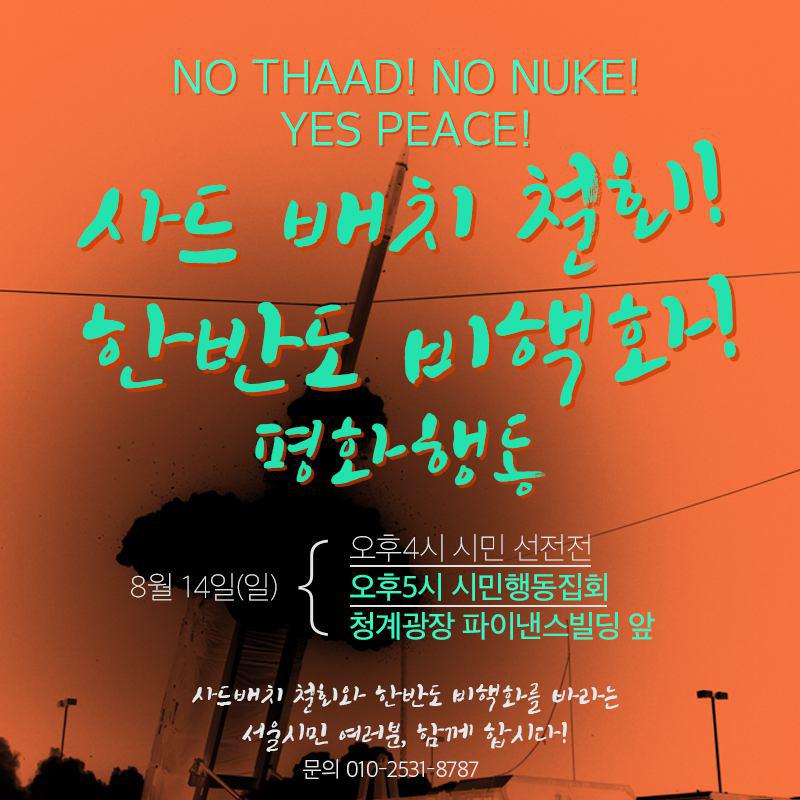 | 779 | 공지8.14 사드배치 철회! 한반도 비핵화! 평화행동 | 사회진보연대 | 2016.08.11 | 31084 |