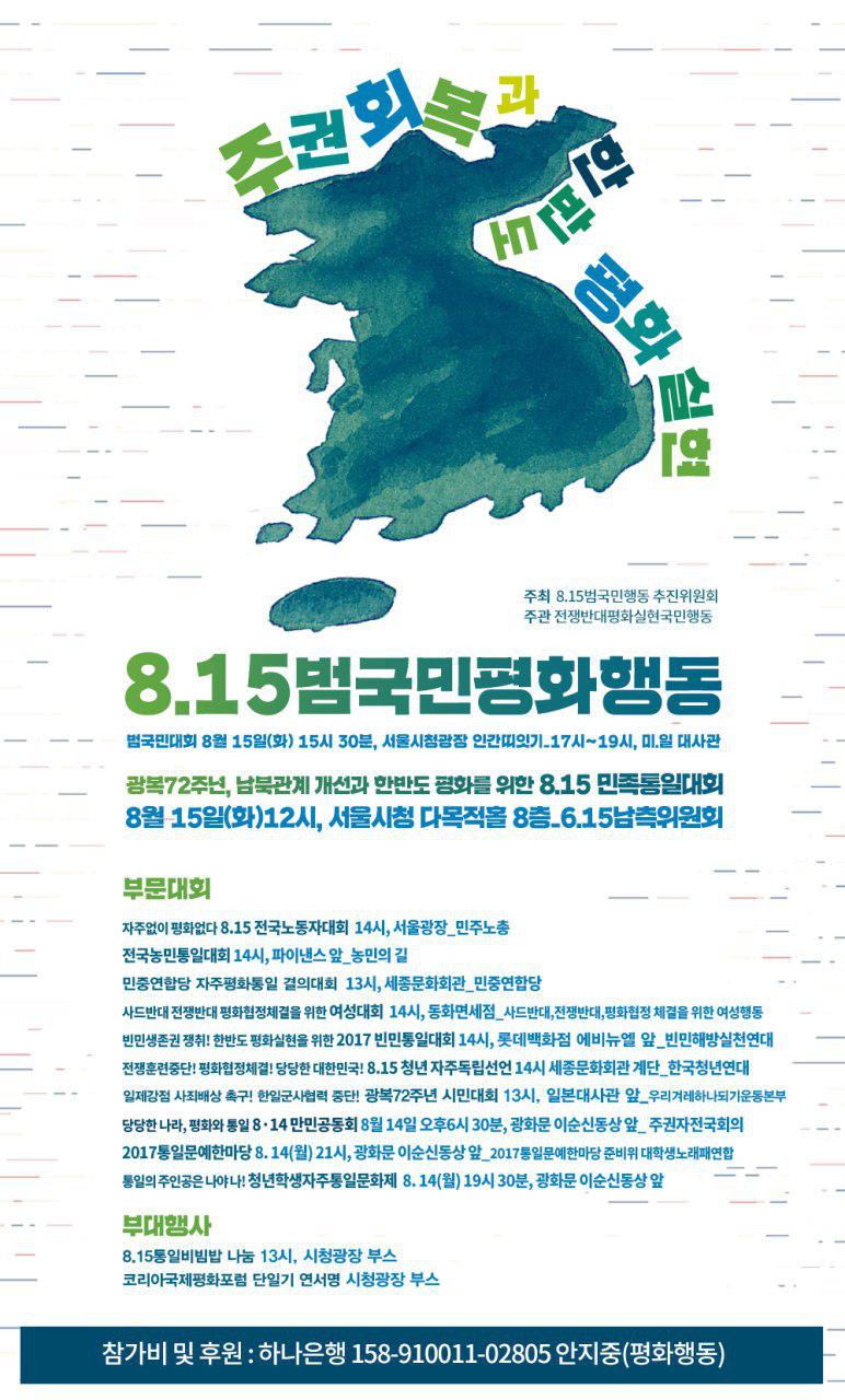 | 990 | 공지8.15 범국민평화행동 안내 | 사회진보연대 | 2017.08.14 | 34096 |