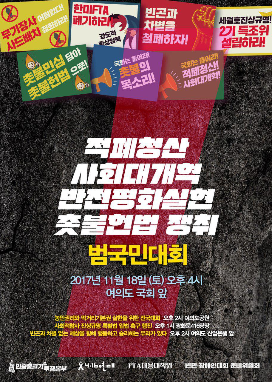 적폐청산 사회대개혁 반전평화실현 촛불헌법 쟁취 범국민대회